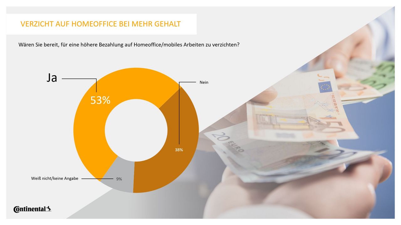 Mehr als die Hälfte der Befragten (53 Prozent) würde für eine höhere Bezahlung auf Homeoffice und mobiles Arbeiten verzichten. „Die Lebenshaltungskosten sind zuletzt stark gestiegen. Daher liegt das Augenmerk vieler Beschäftigter wieder mehr auf der Bezahlung“, sagt Reinhart. „Auf der anderen Seite wären 38 Prozent, also über ein Drittel, der Befragten nicht zum Verzicht bereit.“
