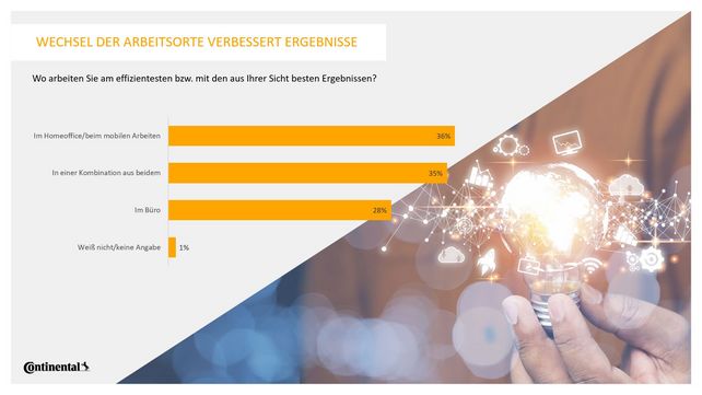 Knapp die Hälfte (47 Prozent) der Büroangestellten in Deutschland würde kündigen, wenn ihr Arbeitgeber die Möglichkeit von Homeoffice oder mobilem Arbeiten vollständig abschaffen oder stark einschränken würde. Das ist das Ergebnis einer repräsentativen Umfrage, die das Meinungsforschungsinstitut YouGov im Auftrag von Continental unter mehr als 2.000 Büroangestellten durchgeführt hat.