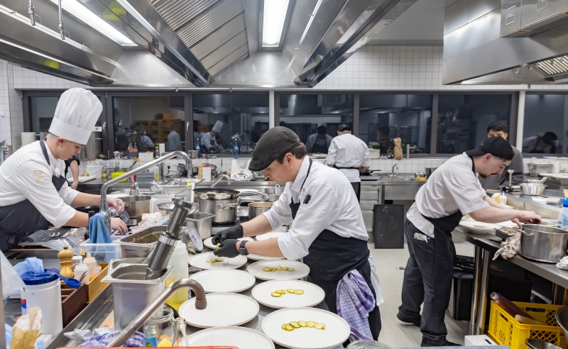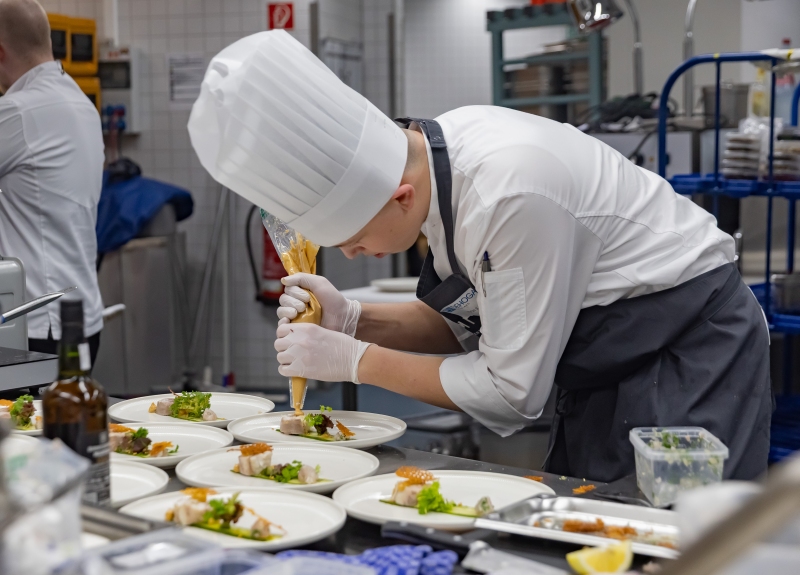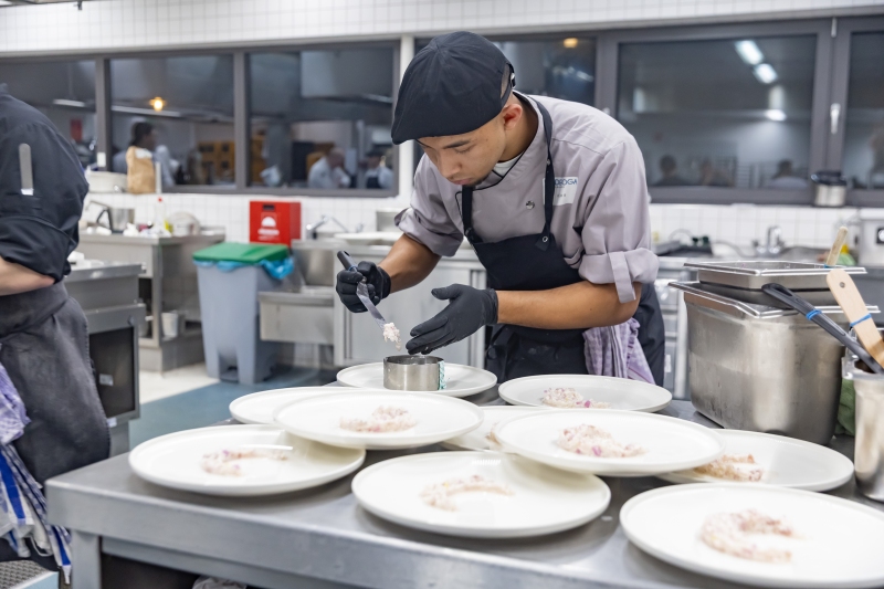 Im Bereich der Köche bildete ein vorgegebener Warenkorb die Basis für ein dreigängiges Menü. Dieser enthielt neben Standardprodukten auch spezielle Zutaten wie Flower Sprouts und Langostino-Karkassen. Eine zusätzliche Herausforderung stellte eine kurzfristige Überraschungsaufgabe dar: Die Auszubildenden mussten innerhalb von zehn Minuten einen „Taste-Löffel“ kreieren.
