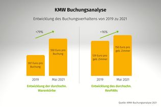 Anzunehmen ist, dass sich in unsicheren Pandemiezeiten der Last-Minute-Booking-Trend verstärkt. Die Buchungsanalyse zeichnet jedoch ein anderes Bild: In 2019 wiesen 70 Prozent der KMW-Buchungen eine Vorausbuchungszeit von weniger als sechs Wochen auf, 43 Prozent dieser Buchungen gingen sogar weniger als drei Wochen vor Reisestart ein. Lediglich zwölf Prozent der KMW-Urlauber planten ihren Urlaub langfristig, mit einer Vorausbuchungsdauer von drei Monaten oder mehr. Corona drehte dieses Buchungsverhalten um: Während des Lockdowns, aber auch bereits bei steigenden Inzidenzen, lag der Anteil von Langfristbuchungen im Zeitraum Oktober 2020 bis März 2021 bei 94 Prozent.