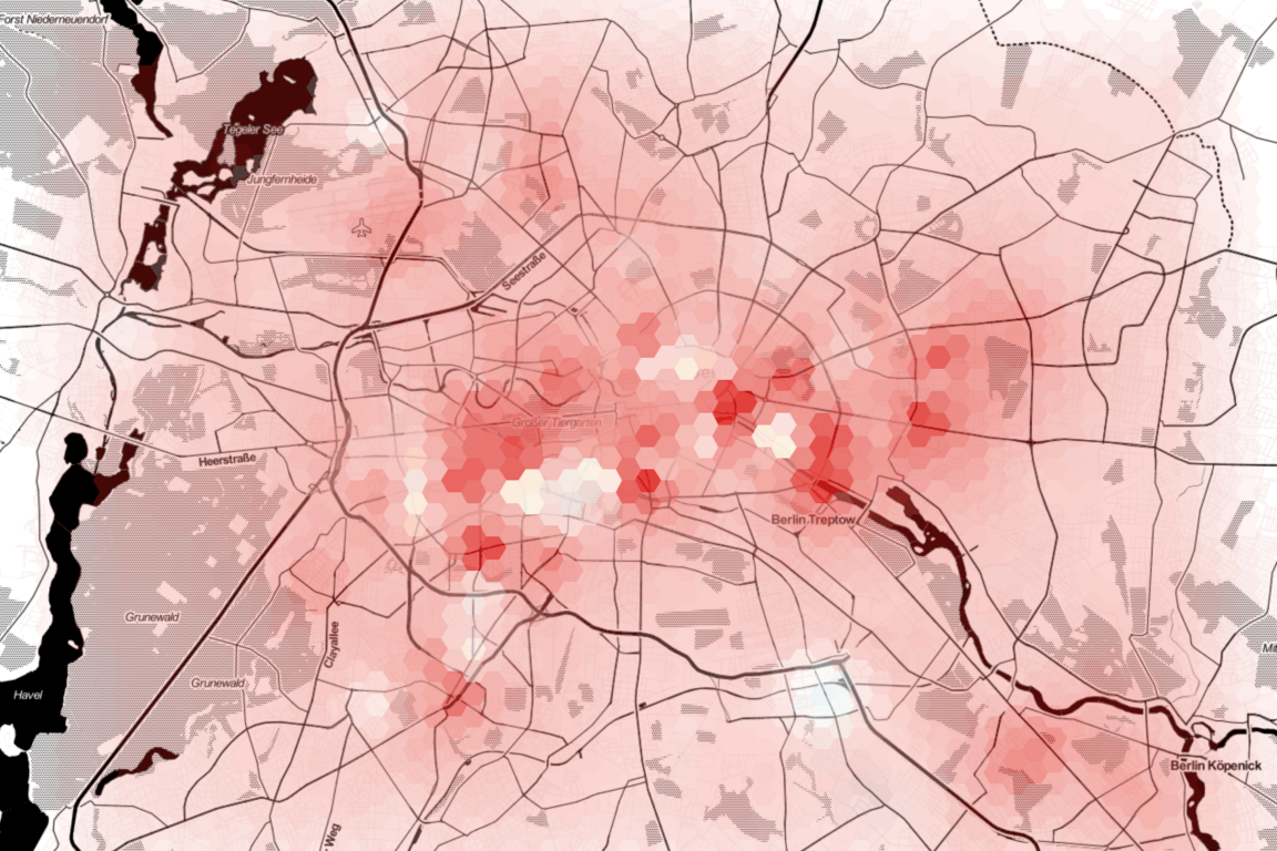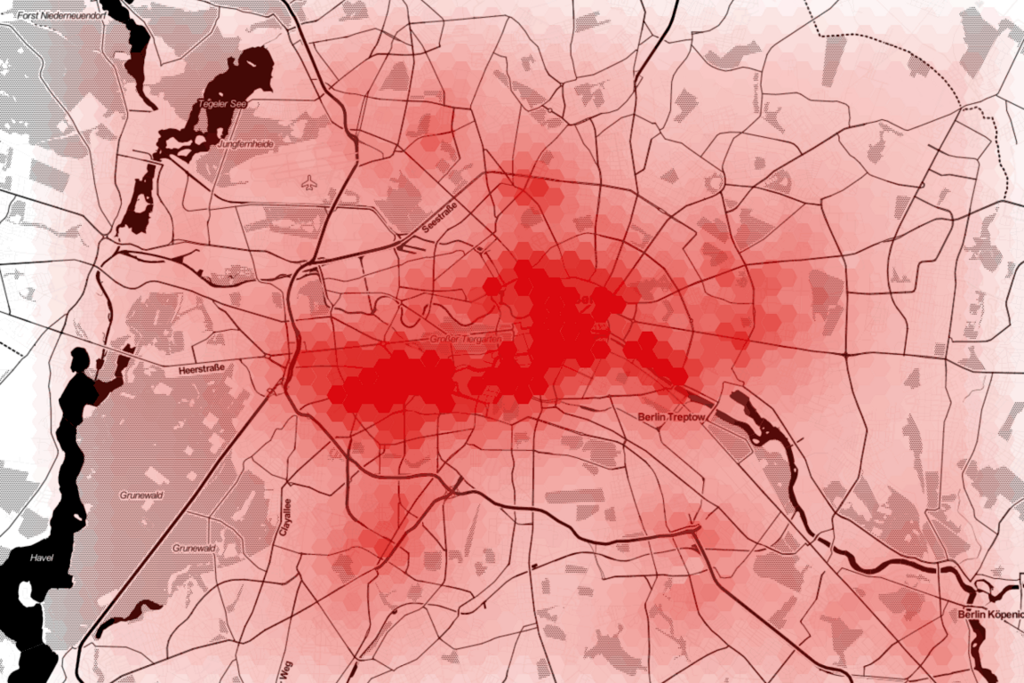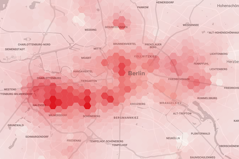 Heatmaps für die Marktnachfrage in Berlin bevor (links) und ein Tag nachdem (rechts) die ITB Berlin vorsorglich gegen die Ausbreitung des Coronavirus abgesagt wurde